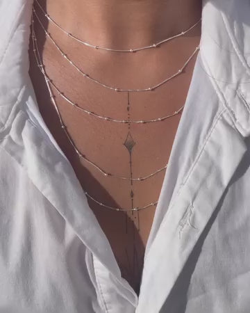 Elevate your ensemble with our SLATE NECKLACE from the distinguished Glimmer Collection. This refined 45cm silver chain features delicate smalls balls embellishments that catch the light with subtle sophistication. A versatile statement piece that transitions effortlessly from day to evening wear, adding a touch of understated elegance to any attire.